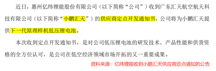 同时,公司在飞行汽车、无人机等低空领域,也布局了相关电池产品。2025年3月18日,亿纬锂能收到了小鹏汇天供应商定点开发通知书,将为其提供下一代原理样机低压锂电池。